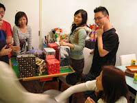 多得我地feating左聖誕baby小臻臻落力娛賓,因為無論佢瞓左、笑緊、飲奶定係換片片,大家都係咁開心! (哈哈哈!)最緊張當然係交換禮物時間,真係估唔到各位$30竟然可以買到咁多野... 故事書、毛巾、厠紙筒、相架、公仔杯、朱古力、蠟燭座、浴鹽! 簡直係份份驚喜,無盡興奮。