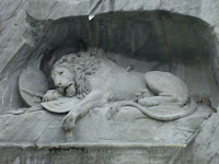 天氣越來越凍了,因為我地向住歐洲的北面走。今日仲會去雪山,凍凍凍呀! 不過第一站,就係去睇一隻獅子。我睇書嘅時候都唔覺得有咩特別,因為我地夠有匯豐銀行對石獅子啦,仲係一對添呀! 不過一去到,真係「讚嘆」左出黎。因為真係好宏偉,同埋係好似架。呢個獅子紀念碑仲有個故仔架... 係爲左紀念晌法國大革命時期,誓死保護法王路易十六而犧牲嘅瑞士雇傭兵而雕刻的。(link)