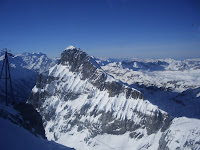 欣賞完大獅子,我地就上鐵力士雪山了。呢個雪山有好多本地人黎滑雪,因為離琉森只有45分鐘車程。我地搭左三程吊車,終於都上到山頂。不過唔去滑雪,真係無咩好做! 好彩有好刺激嘅吊車同好靚嘅風景... 嘩! 好靚呀!